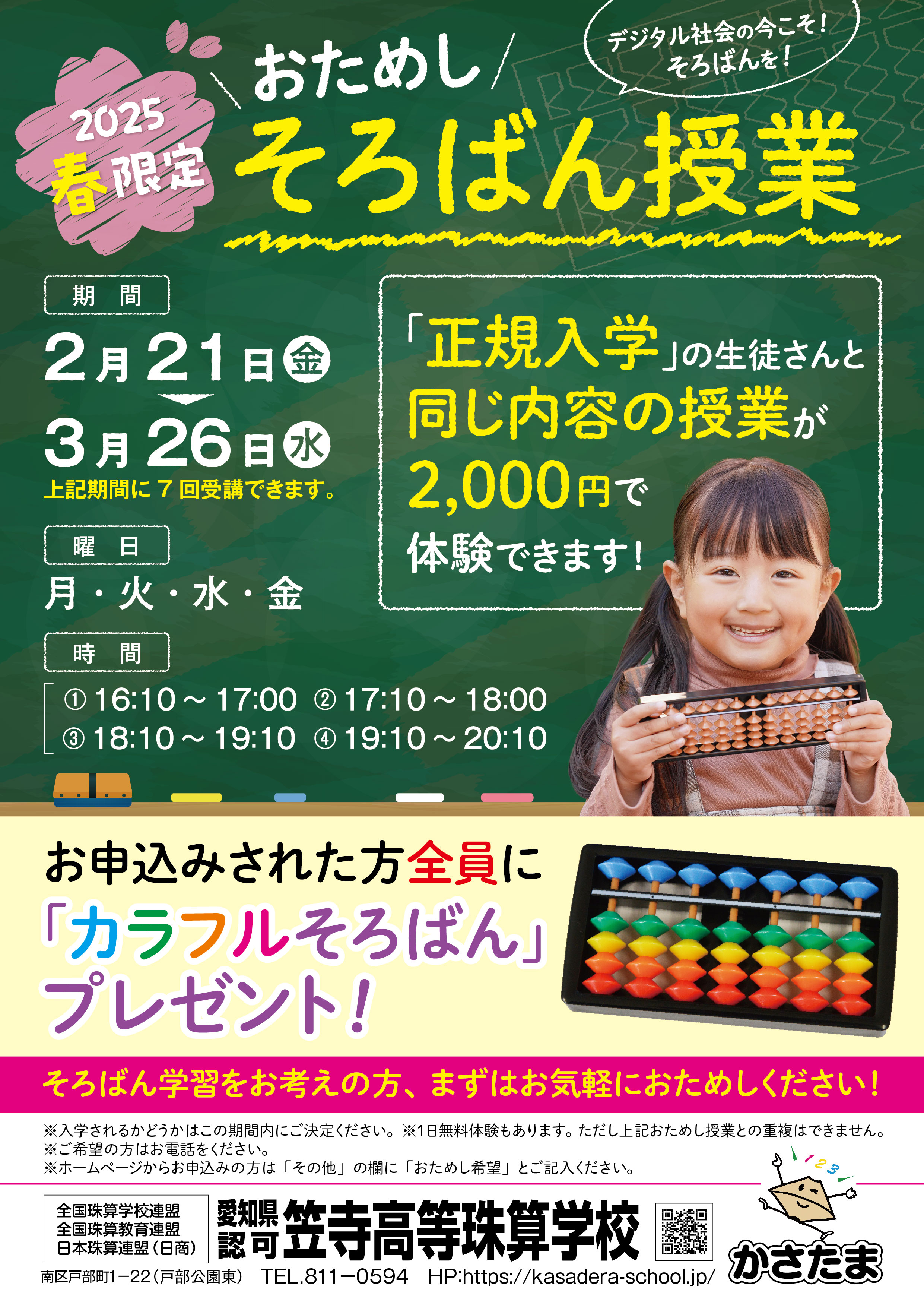 毎年ご好評の「春限定 おためしそろばん授業」が始まります。お気軽にお申込みください。